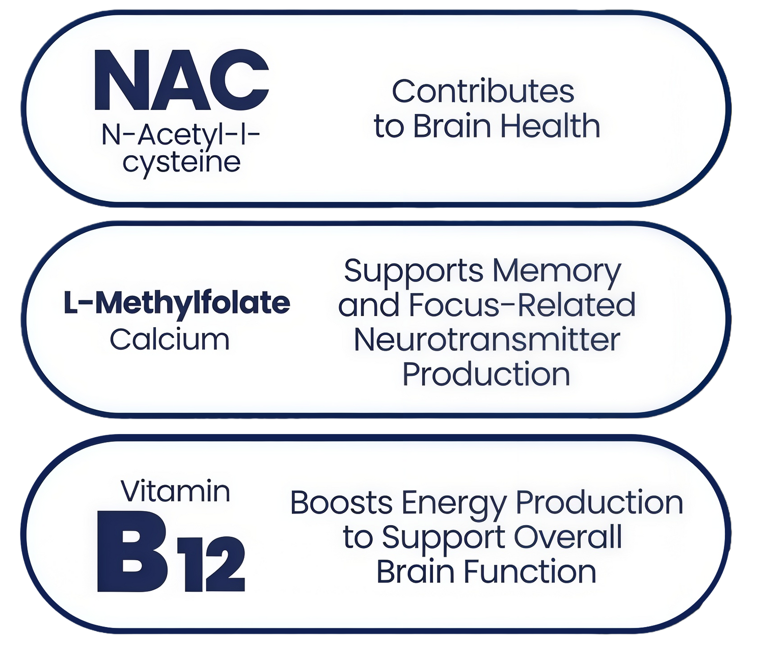 Cerefolin Brain Wellness™ helps support overall brain function by providing essential nutrients that aid in reducing harmful homocysteine levels, which can negatively impact brain health.3*