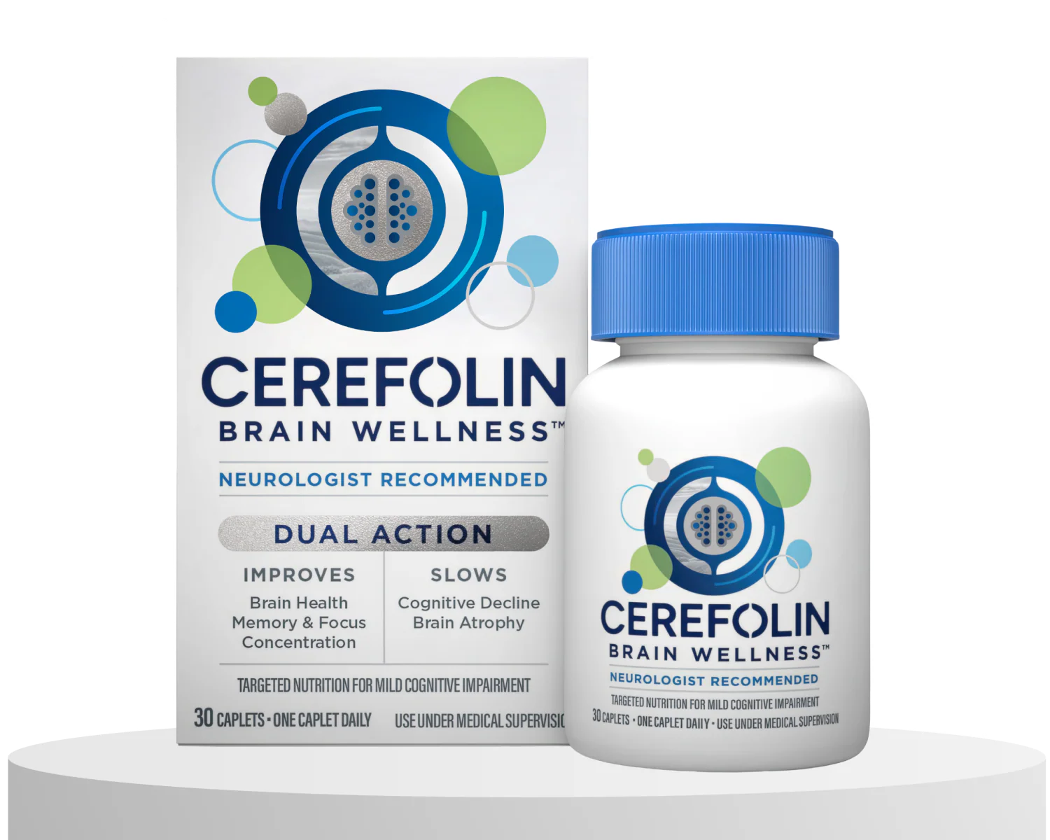 You deserve a mind as sharp and vital as you feel! CerefolinBrain Wellnessmw is targeted nutrition for Mild CognitiveImpairment (MCI)with high homocysteine blood levels. It hasbeen clinically proven* to reduce brain shrinkagel as you age,compared to people not taking it. Starting early with CerefolinBrain Wellness" can help protect your brain cells, improve brainhealth, improve memory and focus, slow the loss of brain function, and improve your overall quality of life.l-4*Neurologist recommended and formerly only sold by prescription*, Cerefolin Brain Wellness" caplets provide specificnutrients you can't get through diet alone to safeguard memory and cognitive function while actively combating the early signs of MCI.